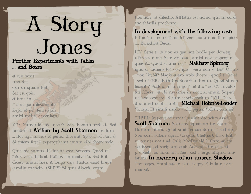 The past 9 months have been spent writing along with some rehearsals of new text in our developing tribute work, A STORY JONES. The development continues, with plans to share a workshop version of the play later in the fall of 2016.