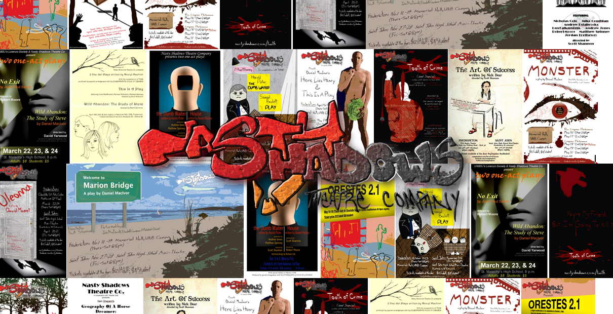 NASTY 2017 IN THE SHADOWS Following our NB IN ON IT tour way back in January of 2017 (12 months ago? Really?), which saw us play this wonderful MacIvor piece to folks in Moncton, Saint John, and Fredericton, the rest of this past year (those 12 months!) have been spent quietly creating, in the shadows. The spring saw the beginning of some preliminary work on creating a one-man show, and this past fall has found A STORY JONES coming to the point of some completion where it is now ready to stage, when we the necessary Shadows are ready sometime in the future. 2018 is Nasty Shadows’ 19th year of making theatre — proud of the production history as I glance back on it. The focus of late has been on writing and playing, which will continue to be the focus but I also want to offer performances for public consumption. This coming year will hopefully find a mix of both as work continues on developing FIRST LAST NOISE! for solo performance, but I will also be working with a yet-to-be-named collaborator to create a solo performance piece based on the writings of one of Nasty Shadows’ favourite playwrights … stay tuned for more on that as the year unfolds … For now, happy new year and may the spin around 2018’s sun shine brightly on you while we remain in the Shadows … scott Scott Shannon