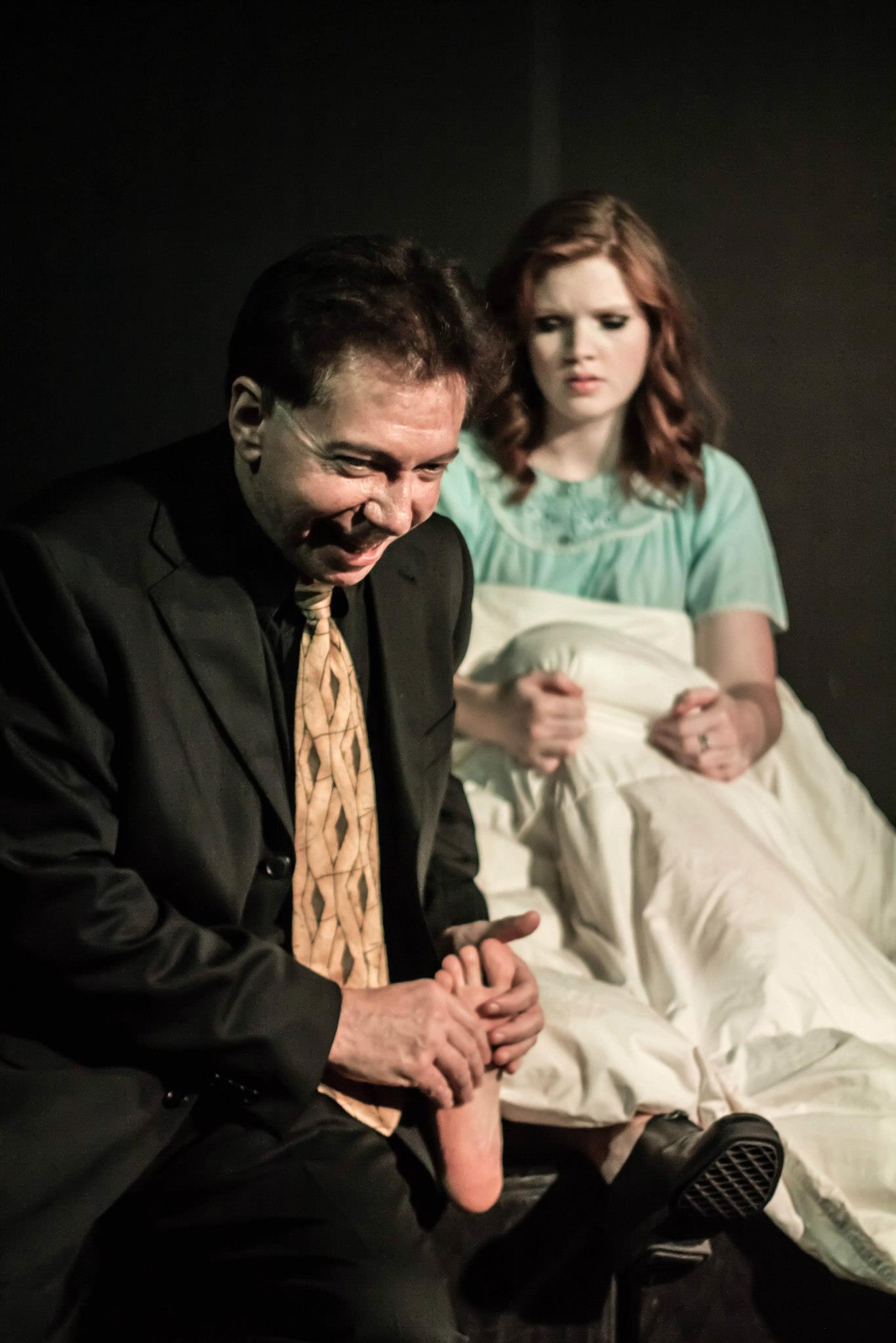 Andrew’s final role as a Shadow had him playing a corrupt and weasely ‘Robert Walpole’ in the fictional-historic tale of The Art of Success. Mr. Jones basically bared it all for the Company in this one – those in the front row I’m sure got quite an eye-full! This character took Andrew out of his comfort zone a bit with the range of extremes I was asking him to hit in the various scenes. He was skeptical at first, but as I trusted him, he trusted me as well and before long we had a wacky and crazy ‘Walpole’ who was the life of the show with both his weak-kneed times in service of the Queen and his villainous rampage while out on the town. It was very fun to see him love Liz’s foot with such gusto, and then turn to threaten the very life of that foot. Doubling in a smaller role as well, the ‘Gaoler‘, we got to hear Andrew’s love of the cockney accent on stage. Priceless.