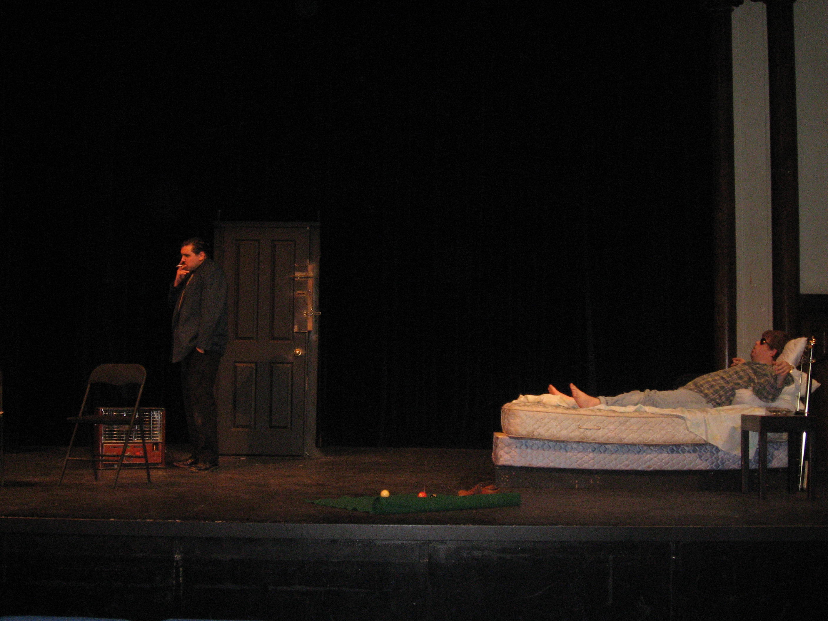 Act II finds the three in a new hotel room with things looking up: they have a TV, sheets on the bed, and room service. However, Fingers and The Doctor are about to arrive which makes matters somewhat tense.