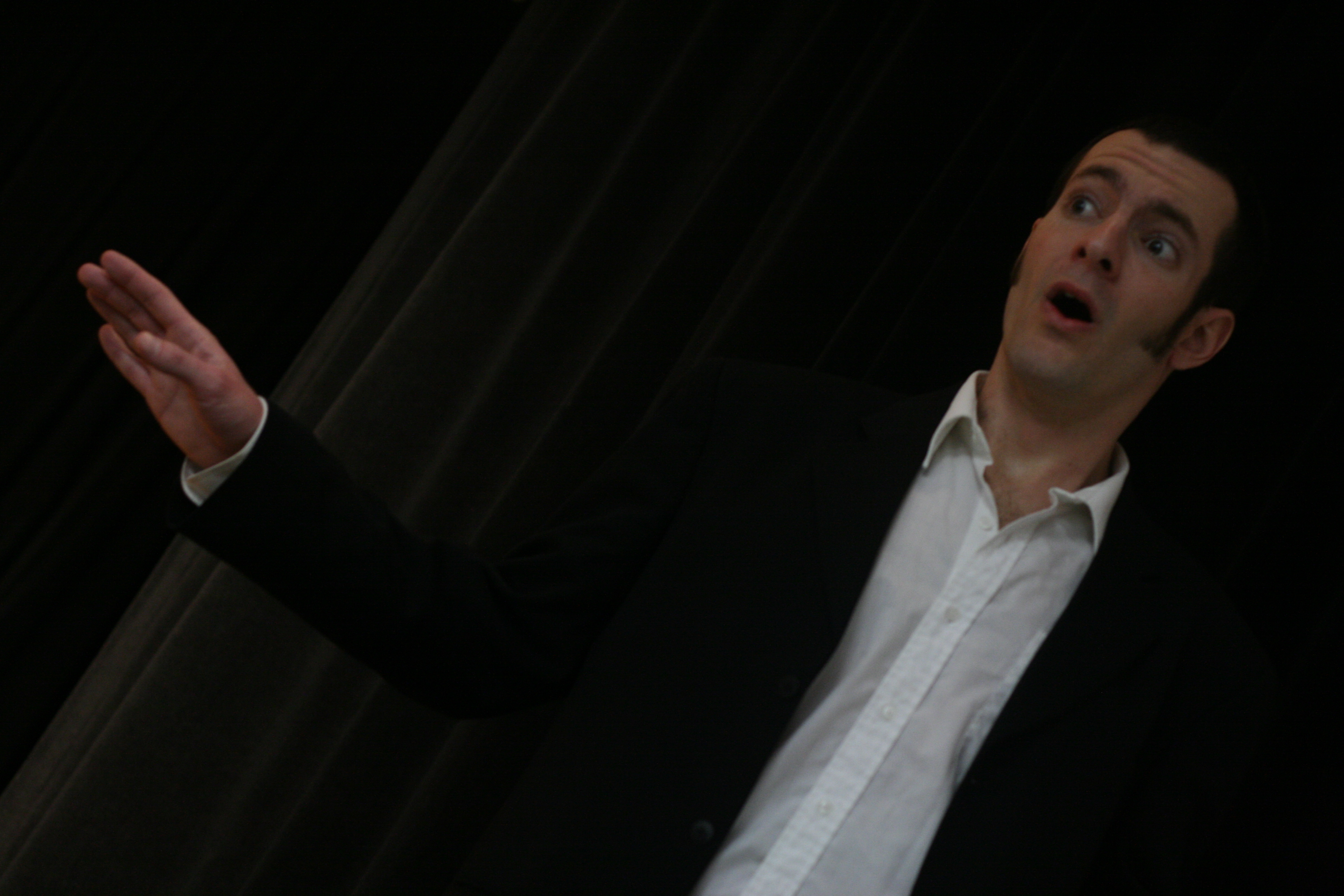 Victor: … and you stick your head in the hole and this is what you see: you see him and you think: What, he doesn’t even look sad! He looks bored, this is a gyp, I want my money back. (Two bucks!) I want my money back. But then before you can look away his face goes all foggy and it’s not him any more, it changes into an actual real flesh of you, but you when you were saddest saddest saddest ever in your whole life and …